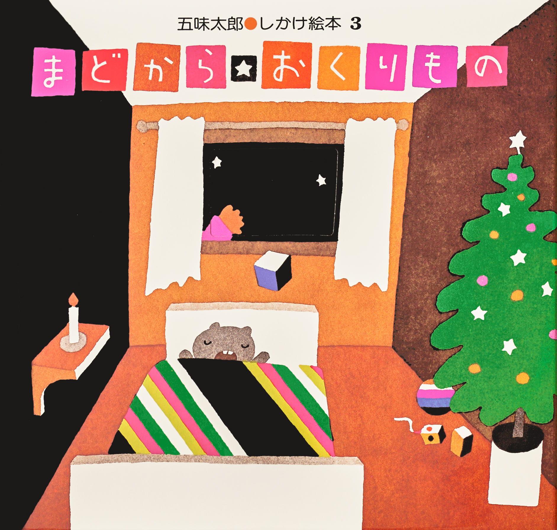 サンタさんが夜のまちをまわりながら、窓のそとからおうちの中をのぞいてプレゼントをおいていきます。窓あきのしかけから見える形を手がかりに、「ここは誰々のおうち」と、あわてもののサンタさんが贈り物を選びます。ページをめくると実は…というユーモラスなすれちがいが次々に起こります。めくったあとの意外な答えがおもしろく、親子でいっしょに推理あそびを楽しめます。