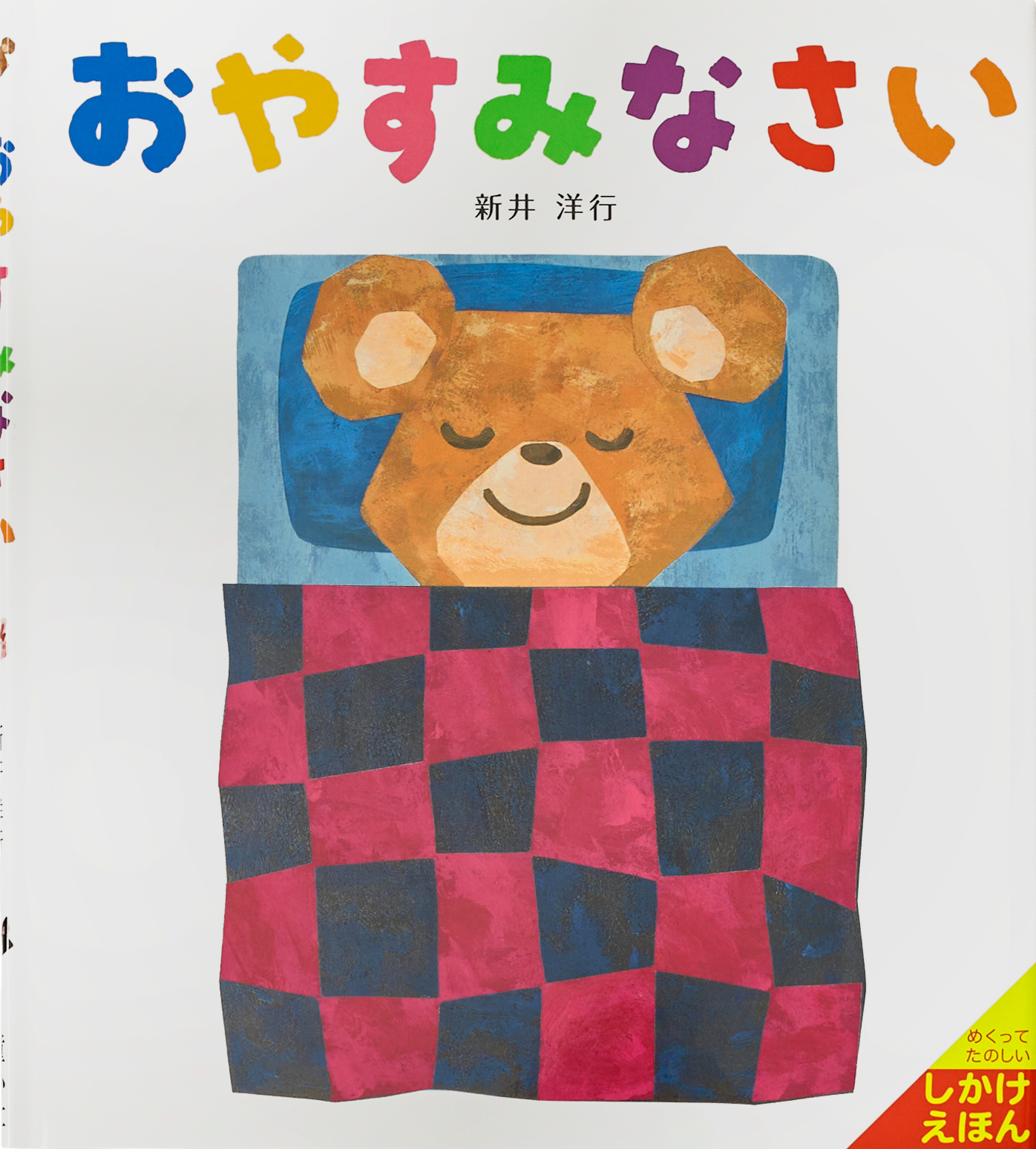 くまさんに、うさぎさんに、ねこさんに、ぶたさんに…あなたの手で、おふとんをふんわりかけてあげましょう。するとみんな目をつぶって「おやすみなさい」。上下に分かれているページをめくると、それまで眠らずに遊んでいた動物たちにふとんがかかります。ふとんをかけられた動物たちは目をつぶってすやすや。だれかに何かをしてあげることの喜びを感じられる絵本です。