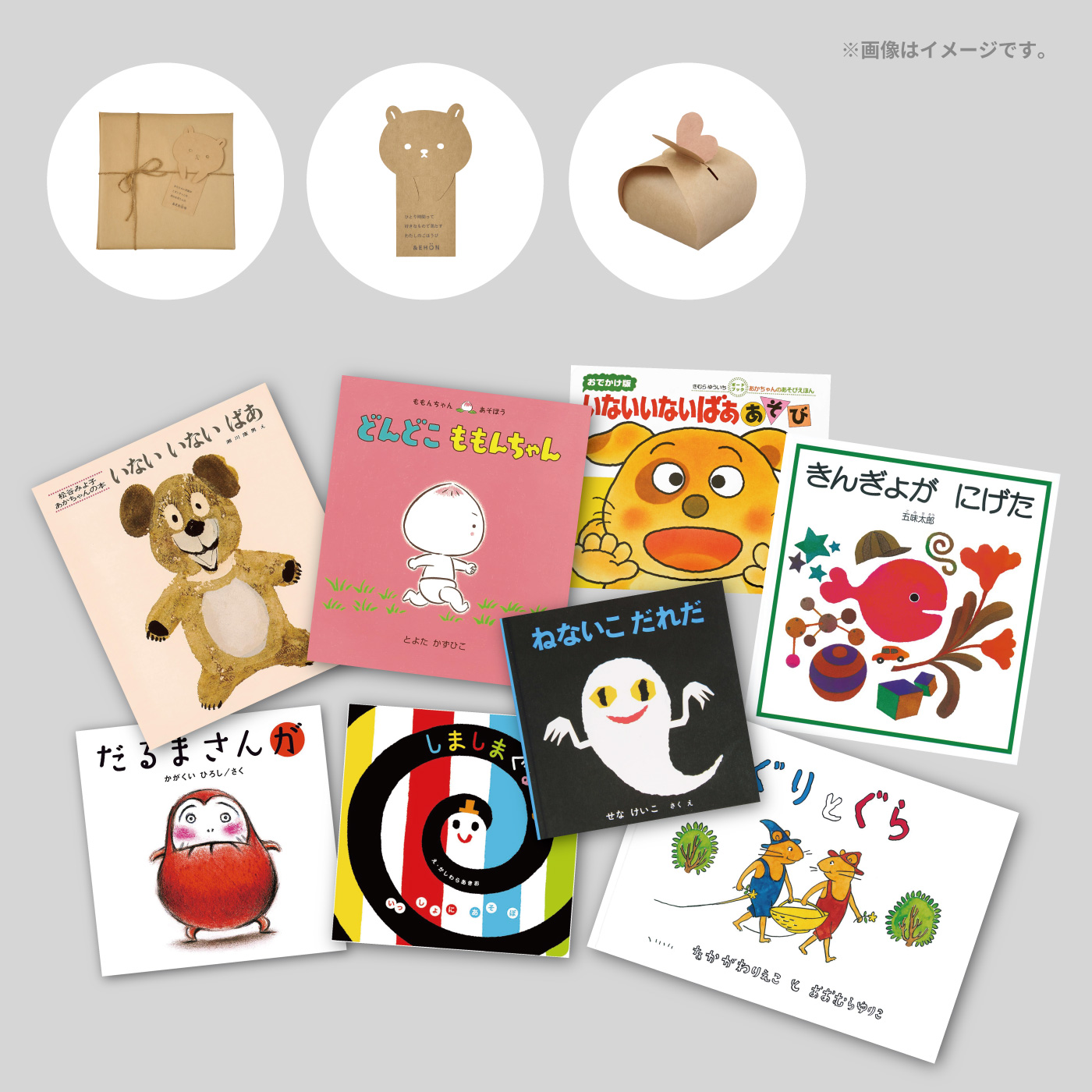 ベースの絵本は、安心のロングセラーの名作から。ご希望の方には、「えらべる絵本」からお好きな1冊に自由に変更できるしくみです。